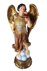 San Miguel Arcángel es uno de los siete arcángeles y su nombre aparece en la Biblia, junto a otros dos arcángeles con poderes súper naturales: Gabriel y Rafael. La Santa Iglesia le dio a San Miguel el lugar principal de los arcángeles llamándolo “Príncipe de los espíritus celestiales”, “jefe o cabeza de la milicia celestial”.